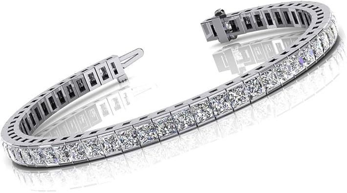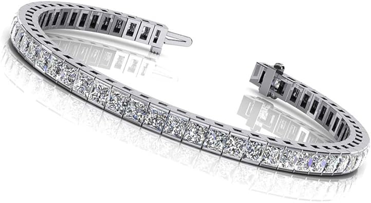 6.00 ct Ladys Princess Cut Diamond Tennis Bracelet In 14 Karat White Gold