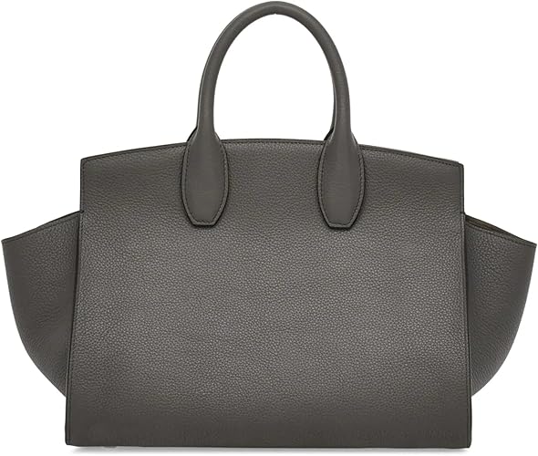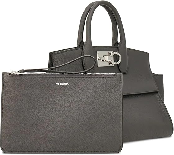 Salvatore Ferragamo Studio Logo-Plaque Tote Bag – Ash Grey Leather, Removable Pouch, Adjustable Stra