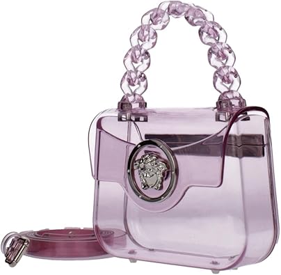 Versace Medusa Women’s Mini Transparent Pink PVC Handbag – Flap Closure, Top Handle & Shoulder Strap